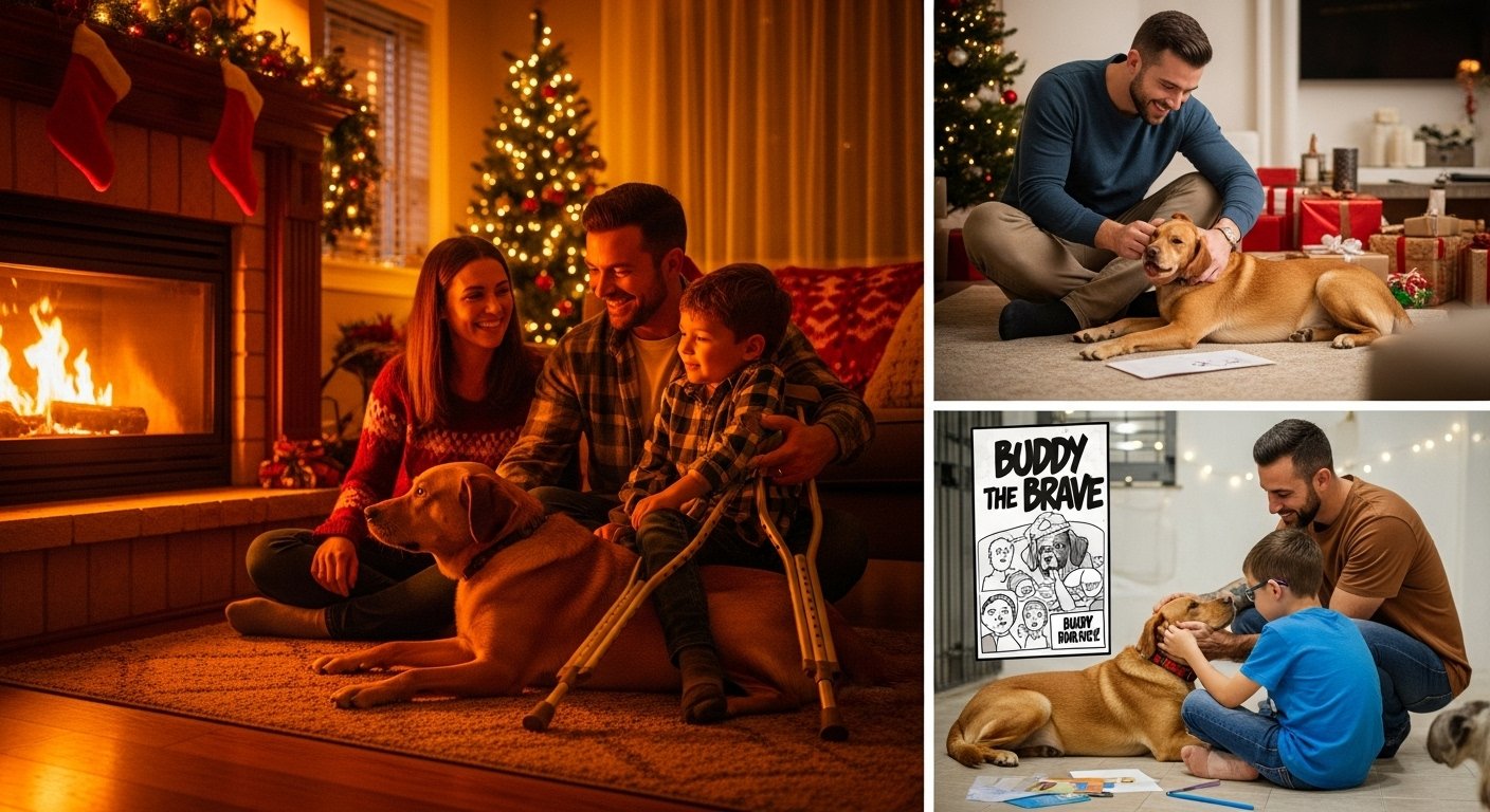 By Christmas, the Watson home was alive again. Laughter echoed through the halls. Buddy had recovered fully, though a faint limp remained, a badge of his battle. Liam could now walk short distances with crutches, and though the journey ahead was long, hope had returned to their hearts.